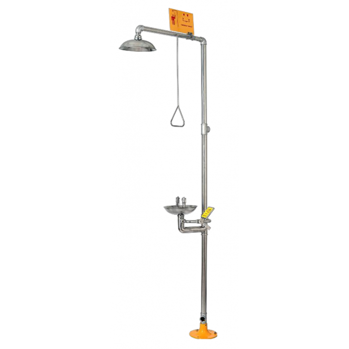 Douche et lave-yeux en inox : Rinçage d'urgence en cas de projection chimique.